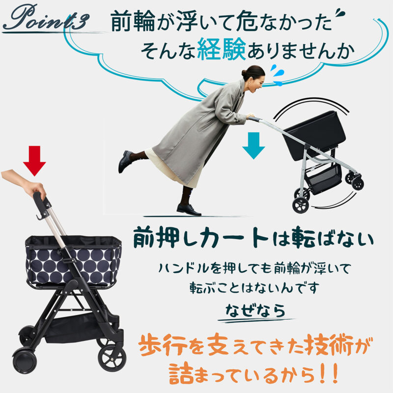 それは、押したときの軽さだったり、荷物を積んだときの安定感だったり。