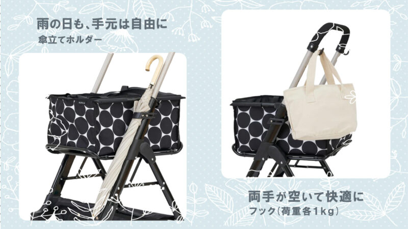 付属機能 荷物掛けフック・傘立て/杖立てホルダー・ティッピング